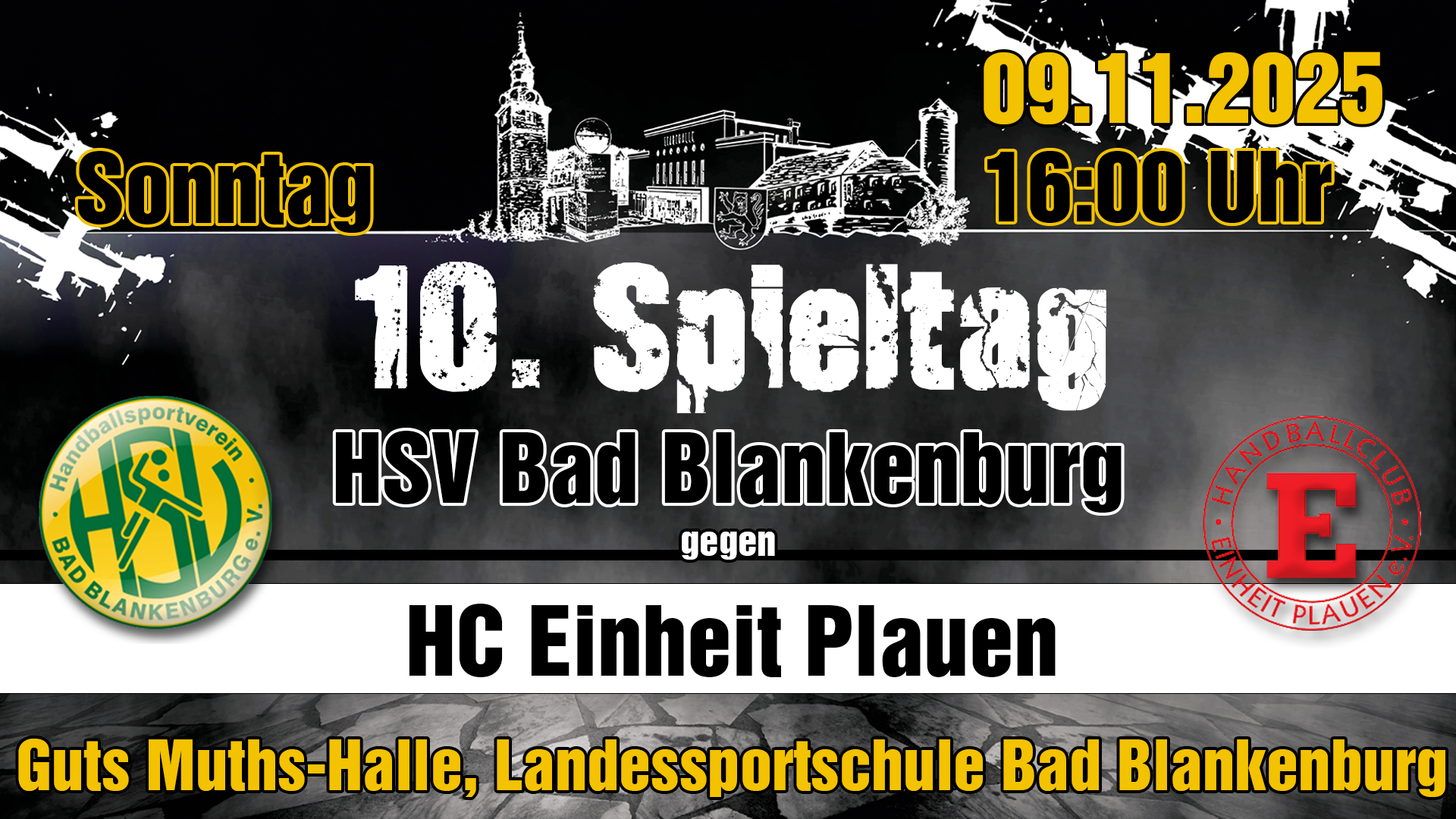 Die Guts Muths‑Halle rüstet sich für den nächsten Handballsonntag. Am 09. November um 16:00 Uhr empfängt Gastgeber HSV Bad Blankenburg den HC Einheit Plauen zum